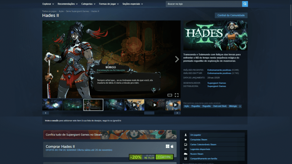 O aclamado roguelike da Supergiant Games, Hades II, entrou em uma excelente promoção na Steam! Nesta sequência épica, você assume