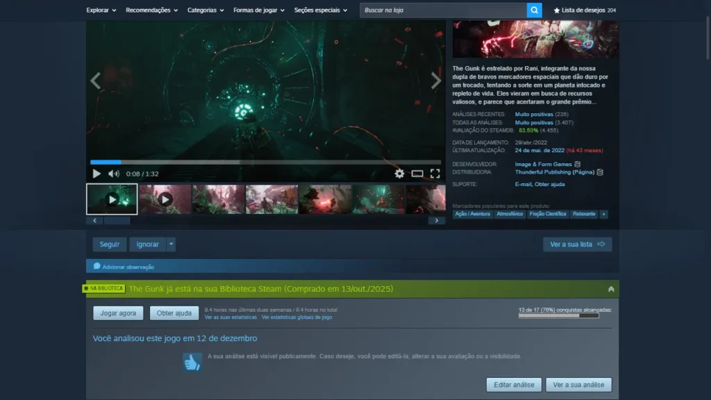The Gunk é ideal para jogadores que buscam uma experiência “zen” e linear, fugindo de mundos abertos gigantescos e complexos. Se você gosta de jogos como Luigi’s Mansion (pela mecânica de aspirador) ou aventuras focadas em narrativa e atmosfera como Journey to the Savage Planet (mas menos cômico e mais contemplativo), este jogo vai te agradar. É perfeito para relaxar após um dia estressante, aproveitando gráficos bonitos sem a pressão de alta dificuldade.