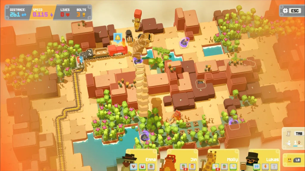 Unrailed! é um jogo multijogador cooperativo caótico onde você trabalha em equipe com seus amigos para construir um trilho de trem que atravessa mundos infinitos gerados proceduralmente . Domine encontros aleatórios com os habitantes, melhore seu trem e evite que ele descarrilhe !